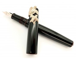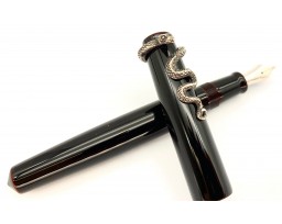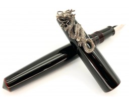 Nakaya Piccolo Long Writer Kuro Tamenuri Fountain Pen with Dragon Stopper