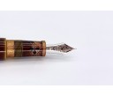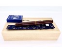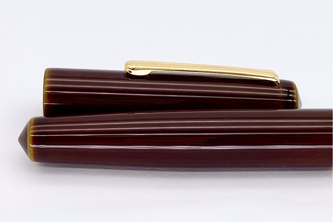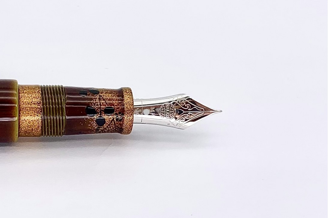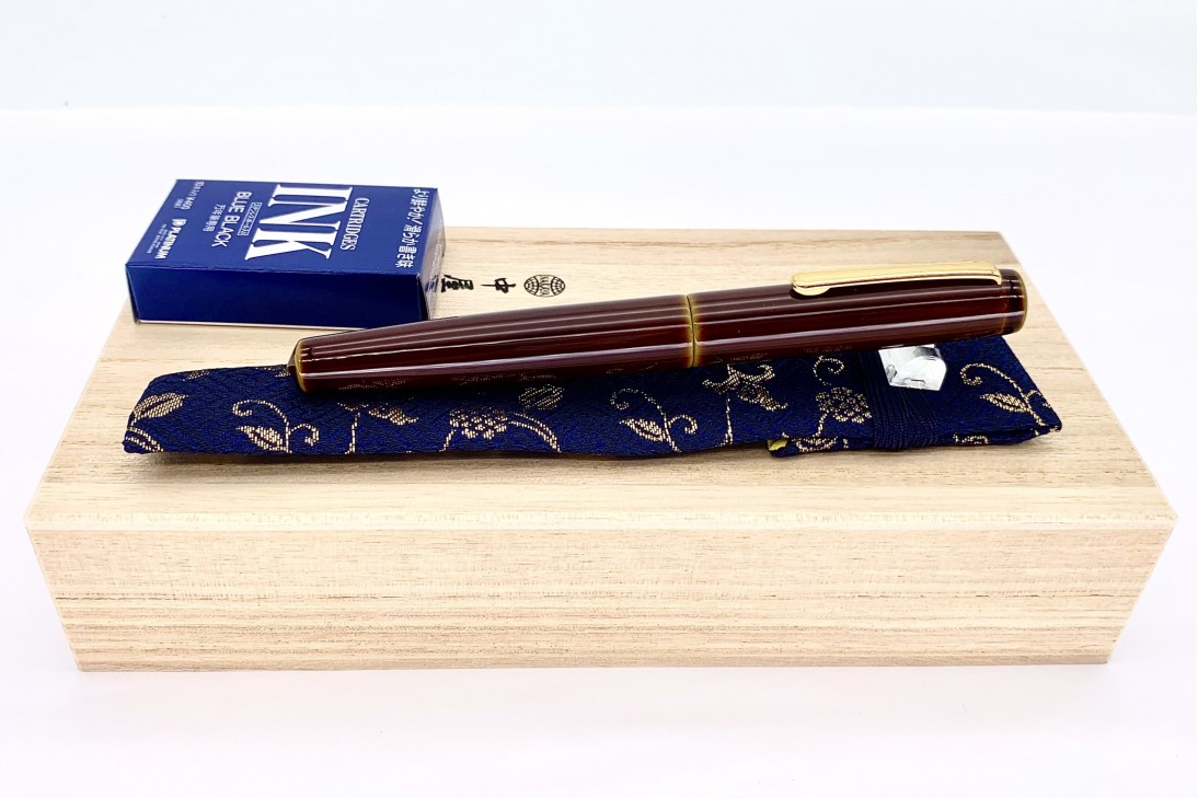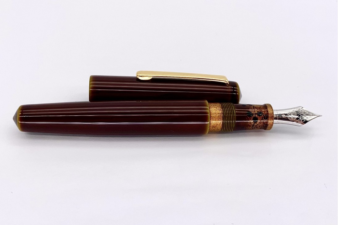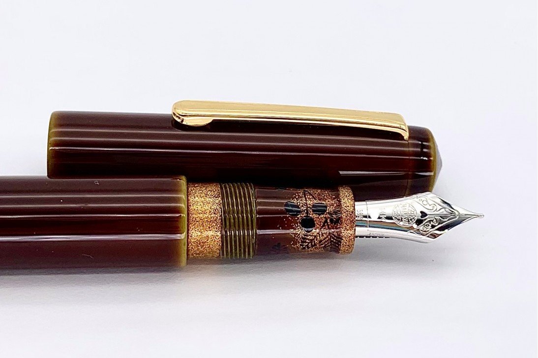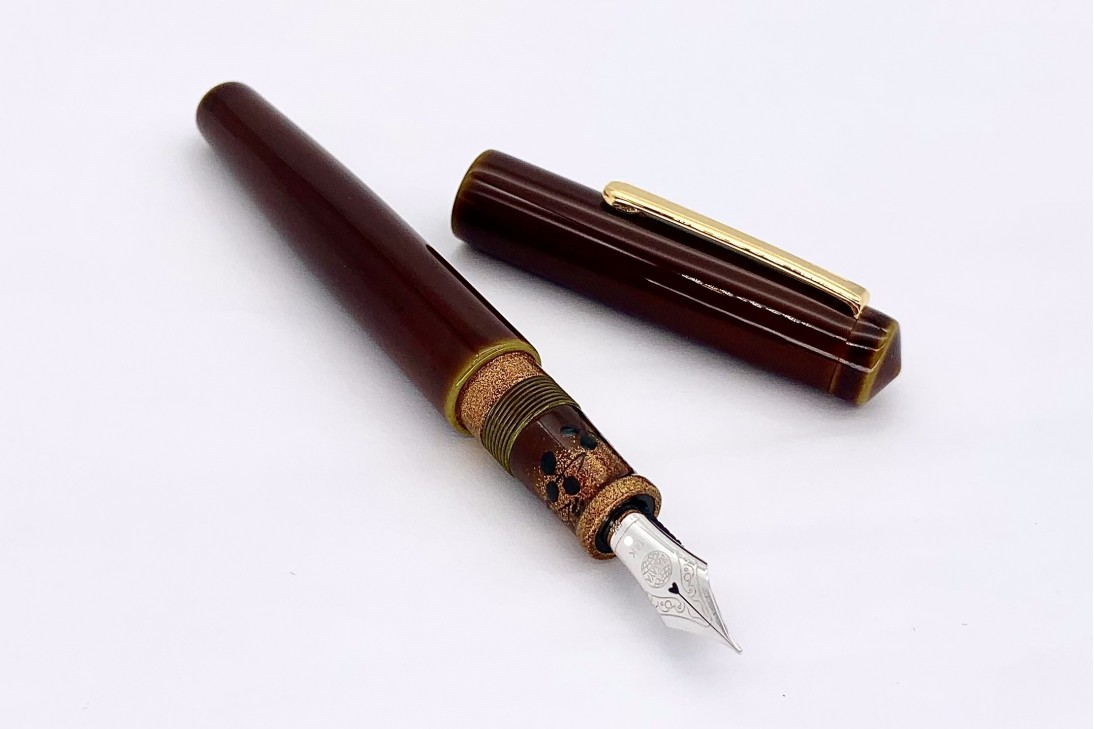 The Piccolo Writer in Heki-tamenuri fountain pen has become one of the most appreciated and popular colors/designs that Nakaya offers. The lighter greenish under-painting shows through at every edge including the barrel threads. This color is over-painted with a semi-transparent darker natural urushi lacquer which, in time, becomes even more transparent. The colors become more lively the longer the pen is used.