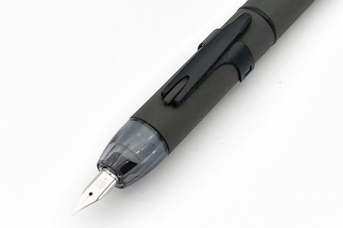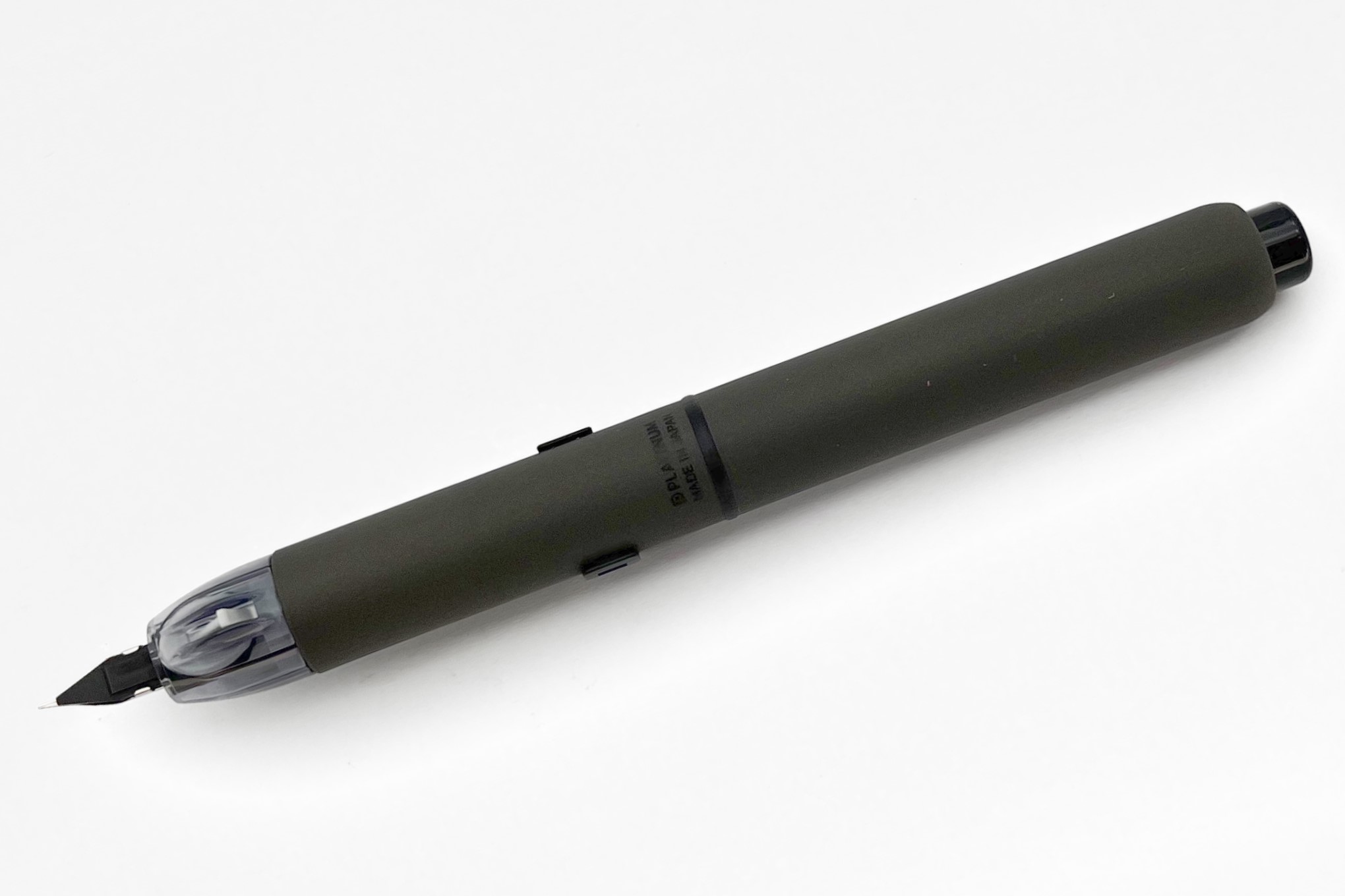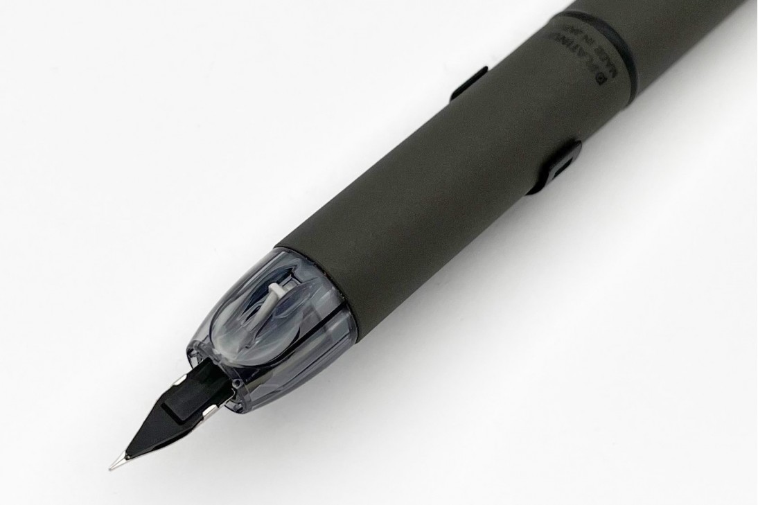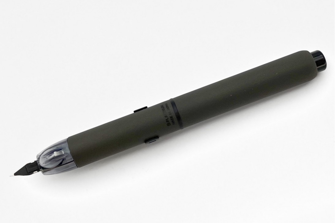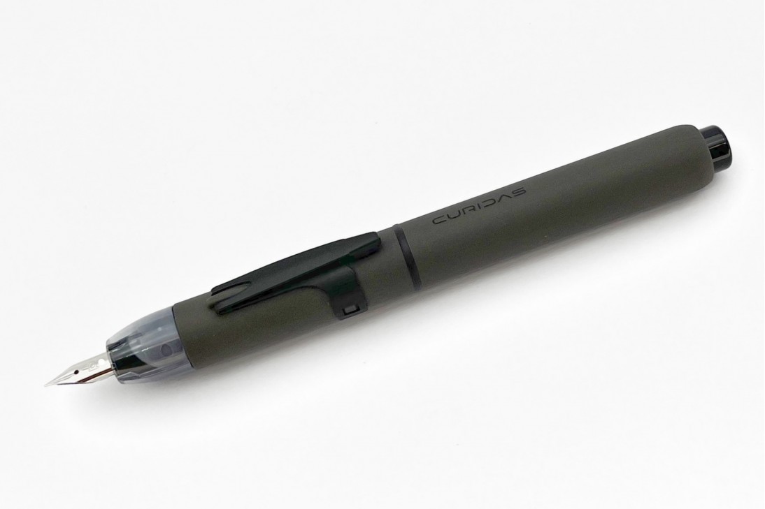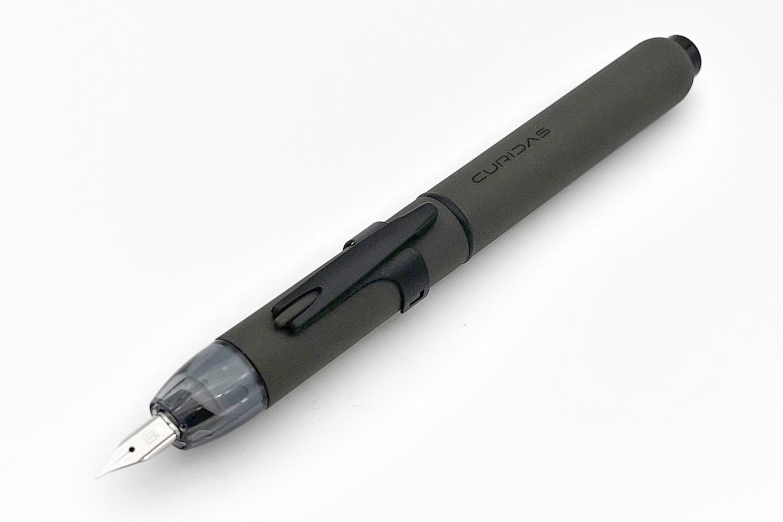 The Platinum Curidas retractable fountain pen has all the convenience of a click rollerball but with the smooth writing experience of a fountain pen. Instead of a traditional cap, the Curidas uses an internal seal to protect the steel nib and keep the ink from evaporating when retracted into the pen.