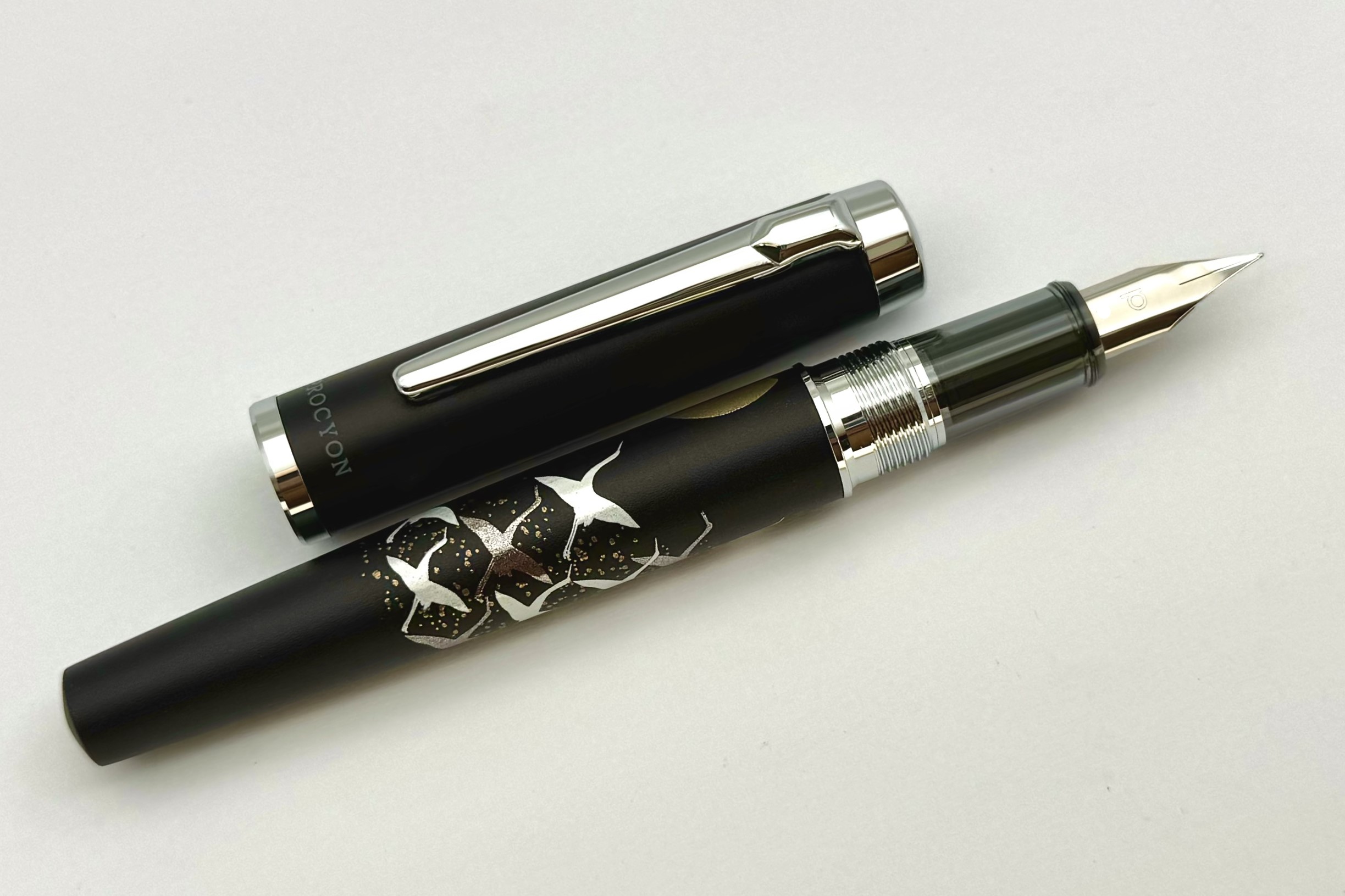 A new model featurning modern Maki-e design, Procyon Luster. Named for one of the brightest stars in the night sky, the Platinum Procyon pen is designed to brighten your writing experience with its sleek body, convenient filling mechanism, and smooth nib. It also features Platinum's patented "Slip and Seal" cap design that keeps the nib from drying out for a year or longer without use. This makes it ideal for new fountain pen users and people who like to switch pens frequently. The Procyon was the winner of the ISOT 2019 grand prize for functionality.