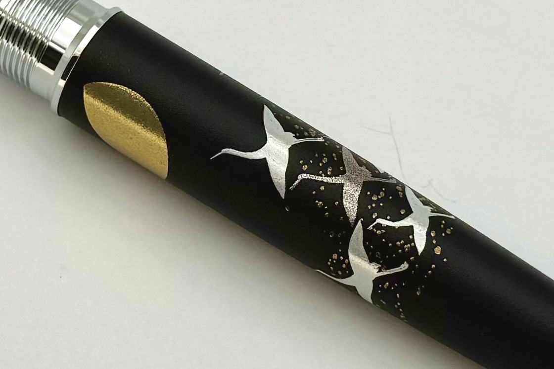 Platinum Procyon Luster Modern Maki-e Cranes Over Moon Fountain Pen