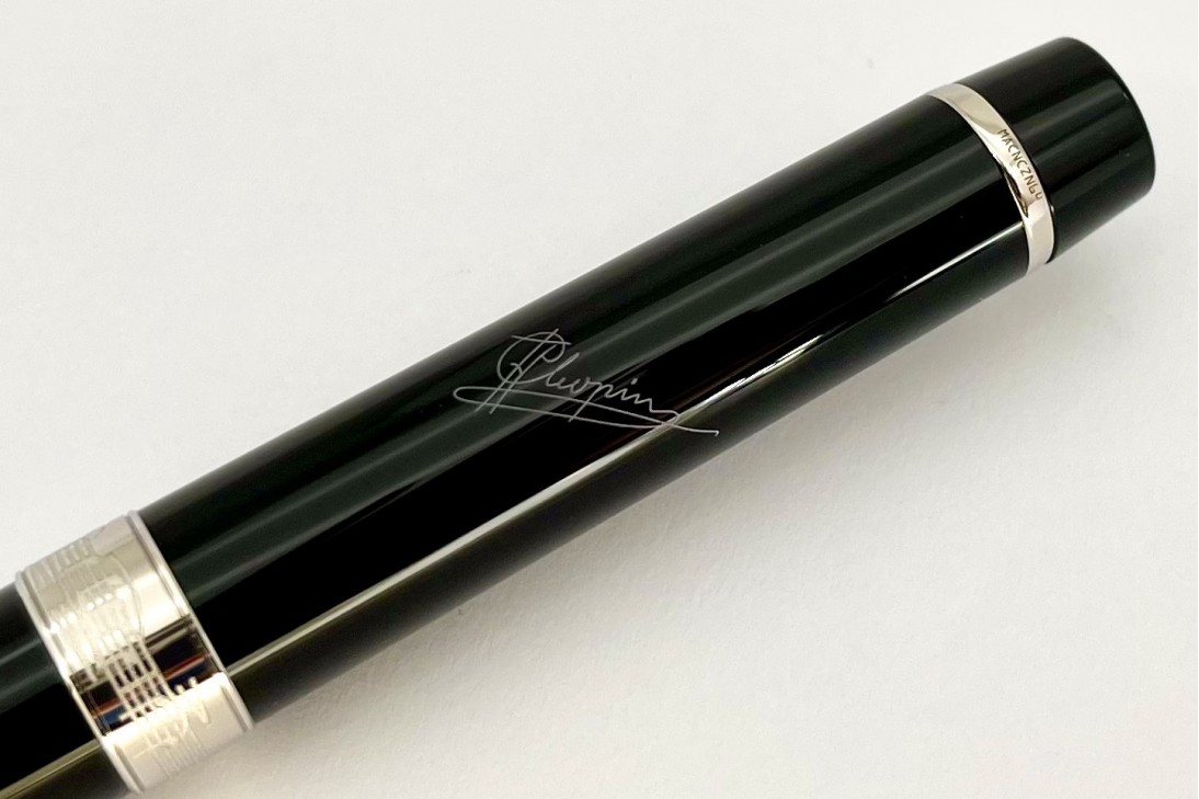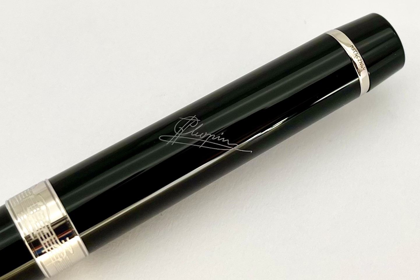 The Montblanc Donation Pen Collection is honouring world-famous classical musicians of the past decades. The Donation Pen supports carefully selected cultural projects with a donation of 20 euros per fountain pen and 10 euros per ballpoint or rollerball. This year's edition pays tribute to Frédéric Chopin, a Polish composer and virtuoso pianist. As an homage to his admiration for the piano, the platinum-coated clip is shaped like a piano hammer. Known for his famous "La Note Bleue", the ink window of this Special Edition comes in a blue colour. The cap ring features the musical notes of Chopin's first nocture, "Nocturne in B-flat minor, Op. 9, No.1", which was published in 1832. The cap and barrel are made out of black precious resin combined with platinum-coated fittings. The special gift box additionally contains a little note pad featuring decorated with some musical notes of his famous nocturne.