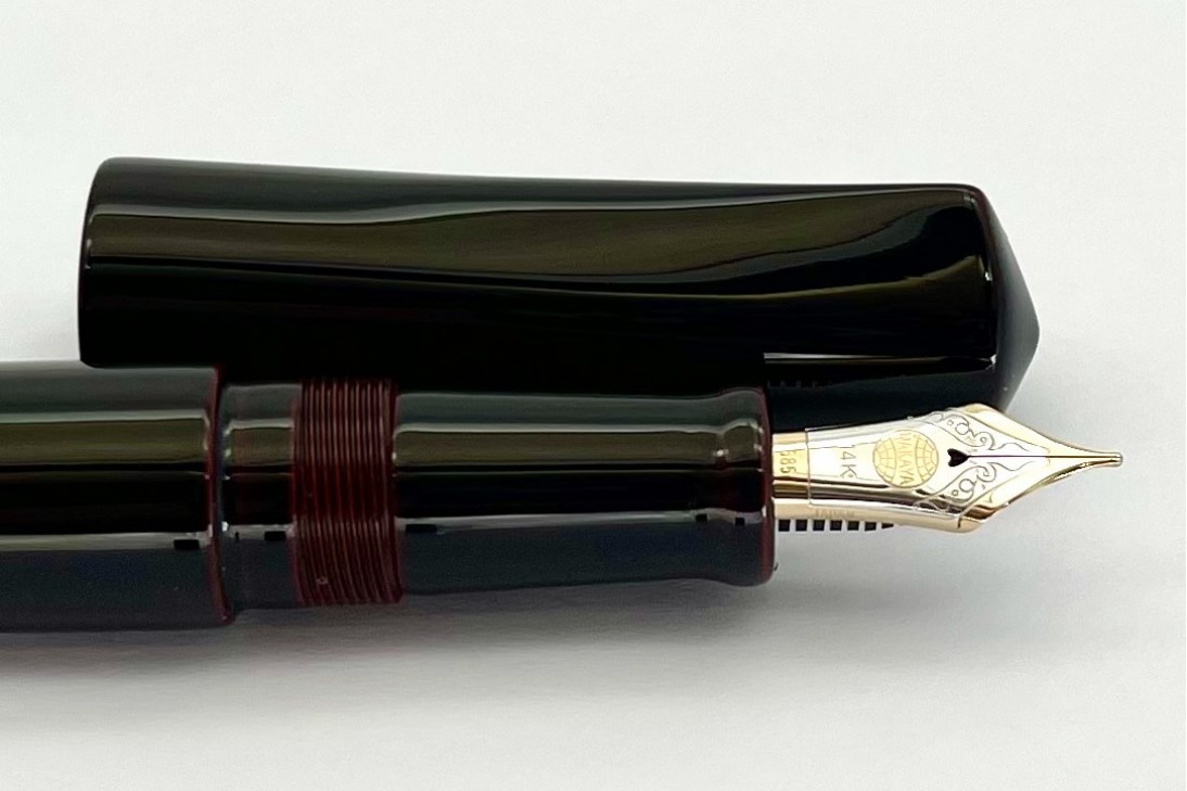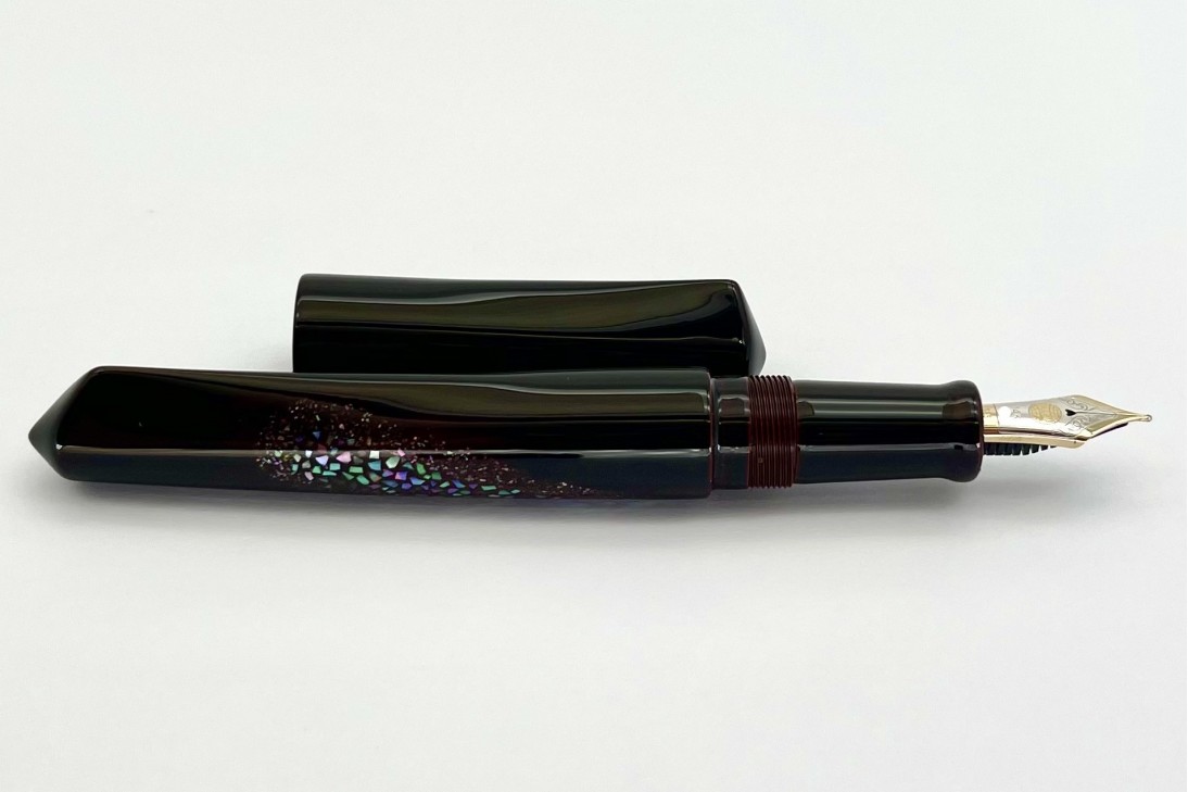 This is the 2nd version of "Dorsal Fin" (DFv2) model. Besides having the Fin-shaped on the cap, it is also featured on the barrel. The Fin-shaped design also act as an anti-roll stopper to prevent the pen from rolling off the table. DFv2 model is very difficult to produce. The artisan has to heap up the Fin-shaped using urushi and charcoal powder. Layer by layer, the artisan painstakingly build and heap up into the shape of a Fin. It is such a tedious and long process that Nakaya was forced to stop producing Dorsal Fin models in Feb 2015. The backlog was so bad that Nakaya couldn't fulfil the orders. It took Nakaya almost 18 months to clear almost all the backlog. It wasn't until July 2016 that Nakaya decided to accept Dorsal Fin model again.