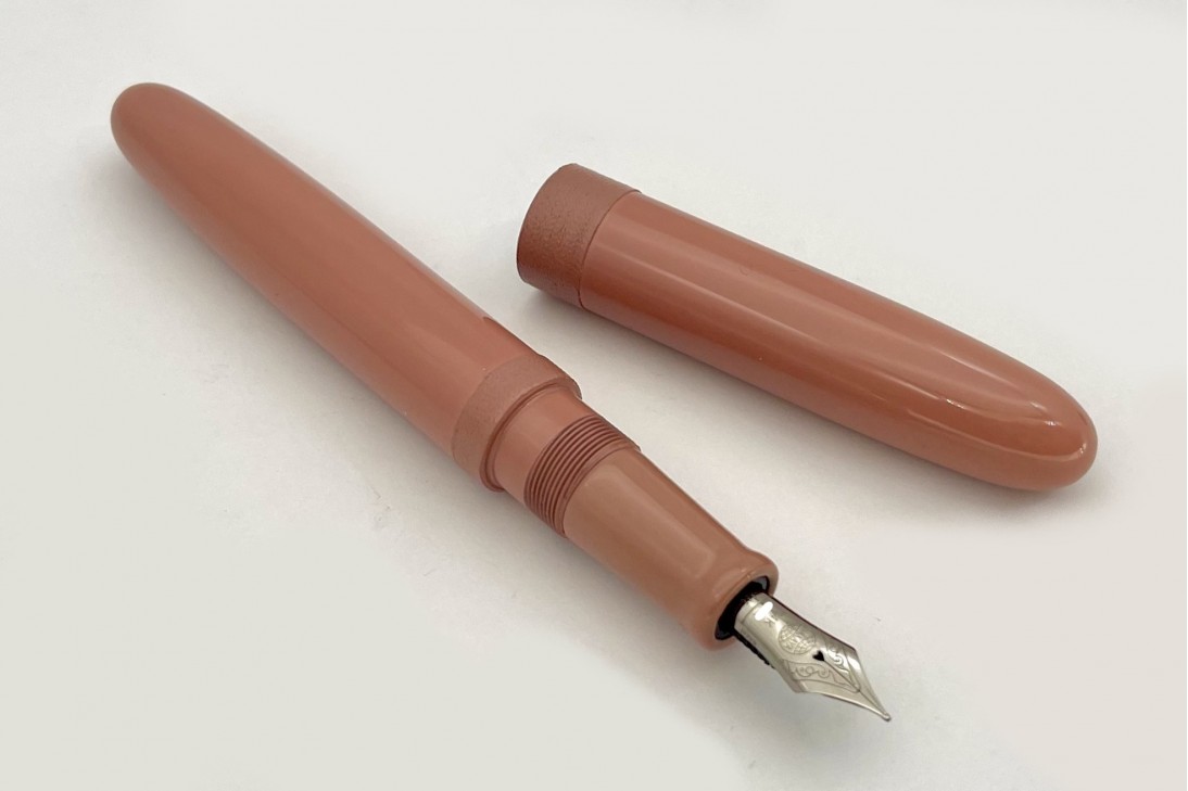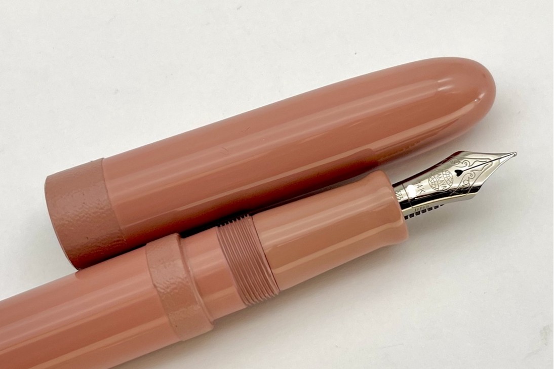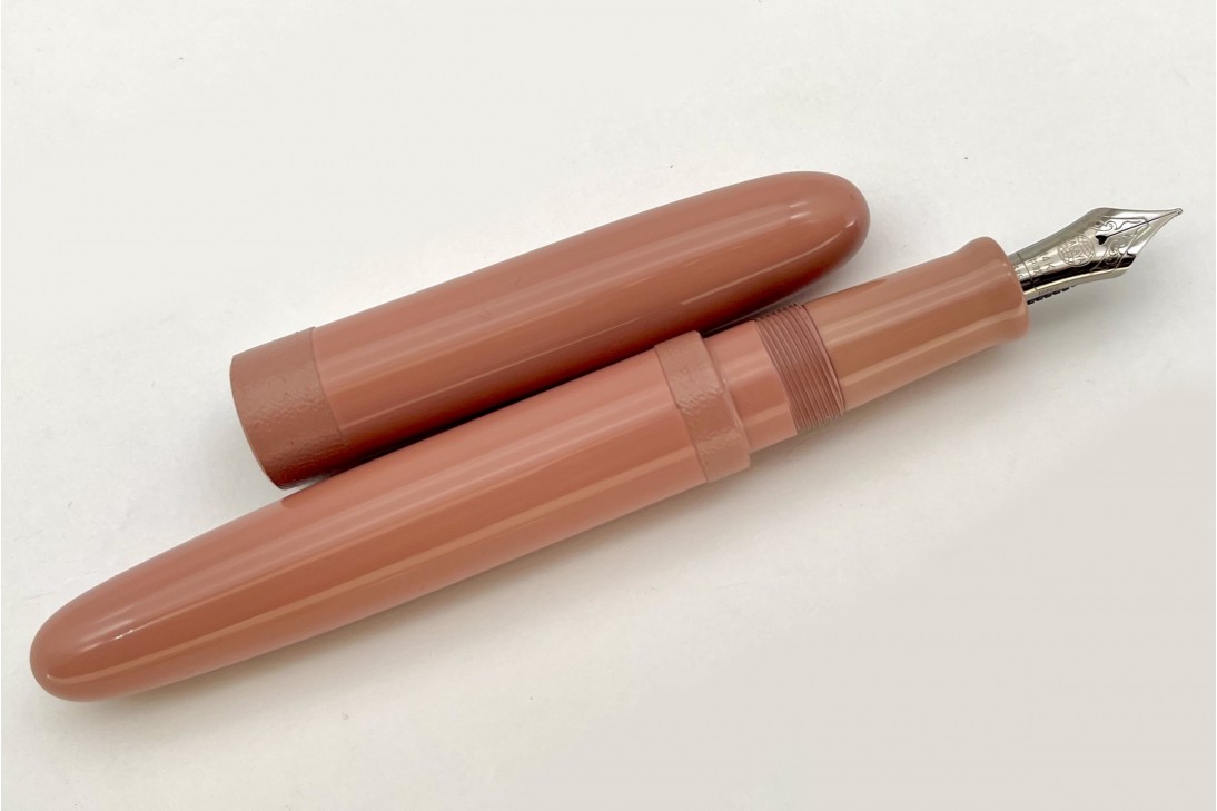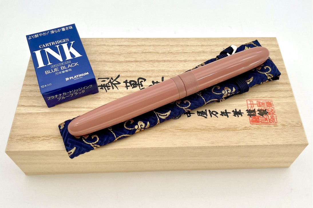 With its rose-pink color and compact shape, Nakaya's Piccolo Cigar Toki-iro fountain pen combines a unique finish with a classic form.