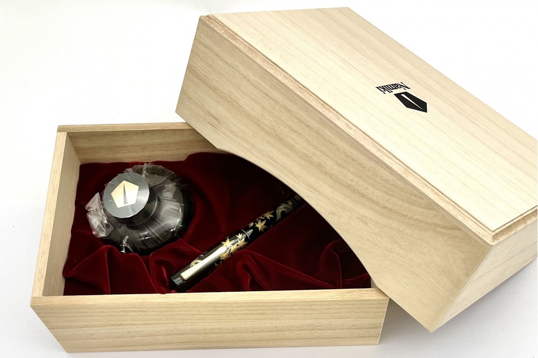 The Namiki Yukari Chinkin Beauty of Autumn leaves uses a cartridge/converter filling system and comes equip with 18k gold nib.