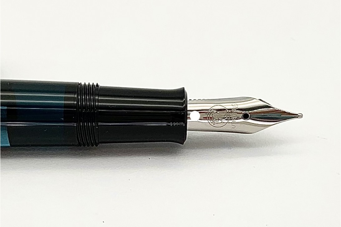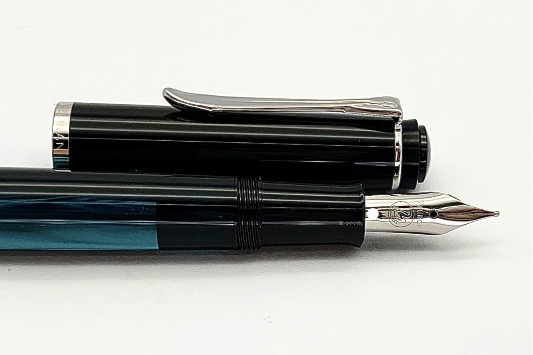 The M205 Petrol Marbled comes with a shiny silver trim and the classic Pelikan clip. The highly polished stainless steel nib is available in Extra Fine, Fine, Medium and Broad widths.