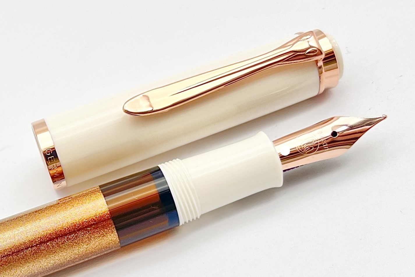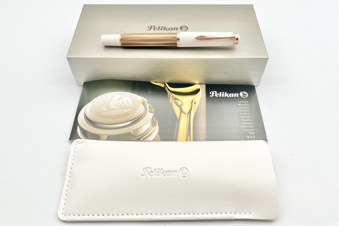 Pelikan M200 Copper Rose Gold is made of precious resin and a special color granulate with copper-colored particles that create an enchanting shimmering effect. It features, for the first time for Pelikan, rose gold plated decorative elements, creating a perfect balance between timeless aesthetics and subtle sophistication.