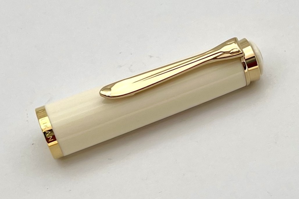 The Pelikan characteristic material is slightly transparent, allowing a view on the inside of the fountain pen. In combination with the white precious resin and the gold-plated decorative elements, a balance between classic design it carries away your imagination.
