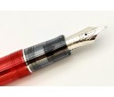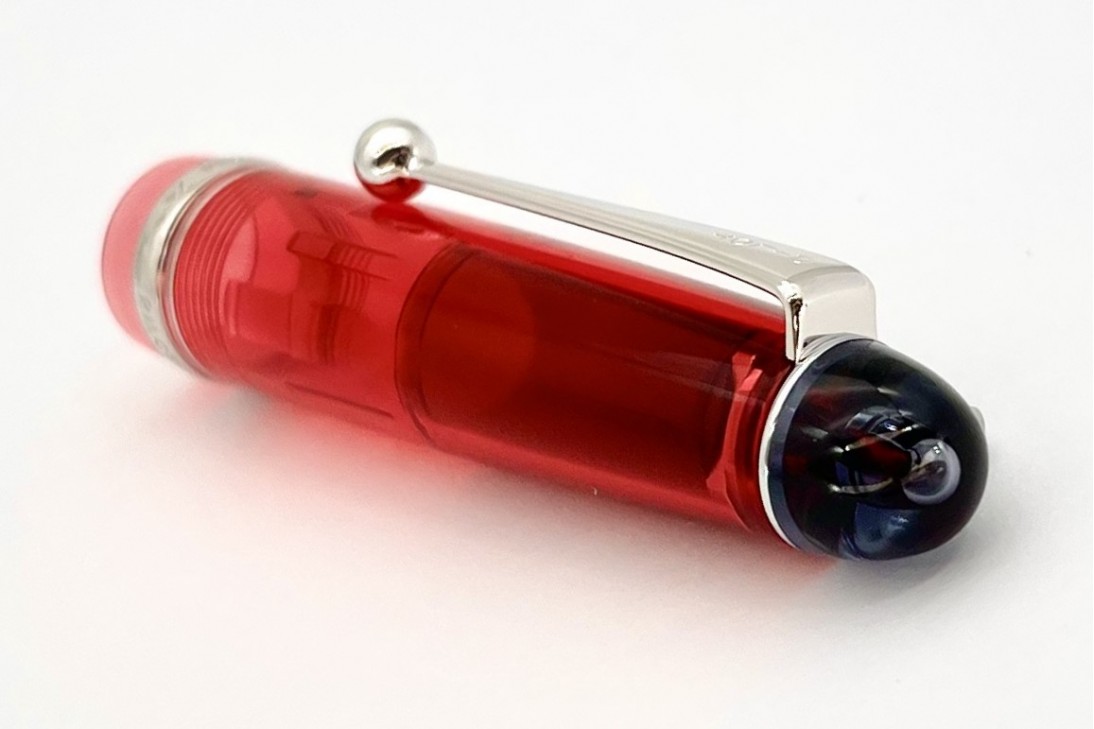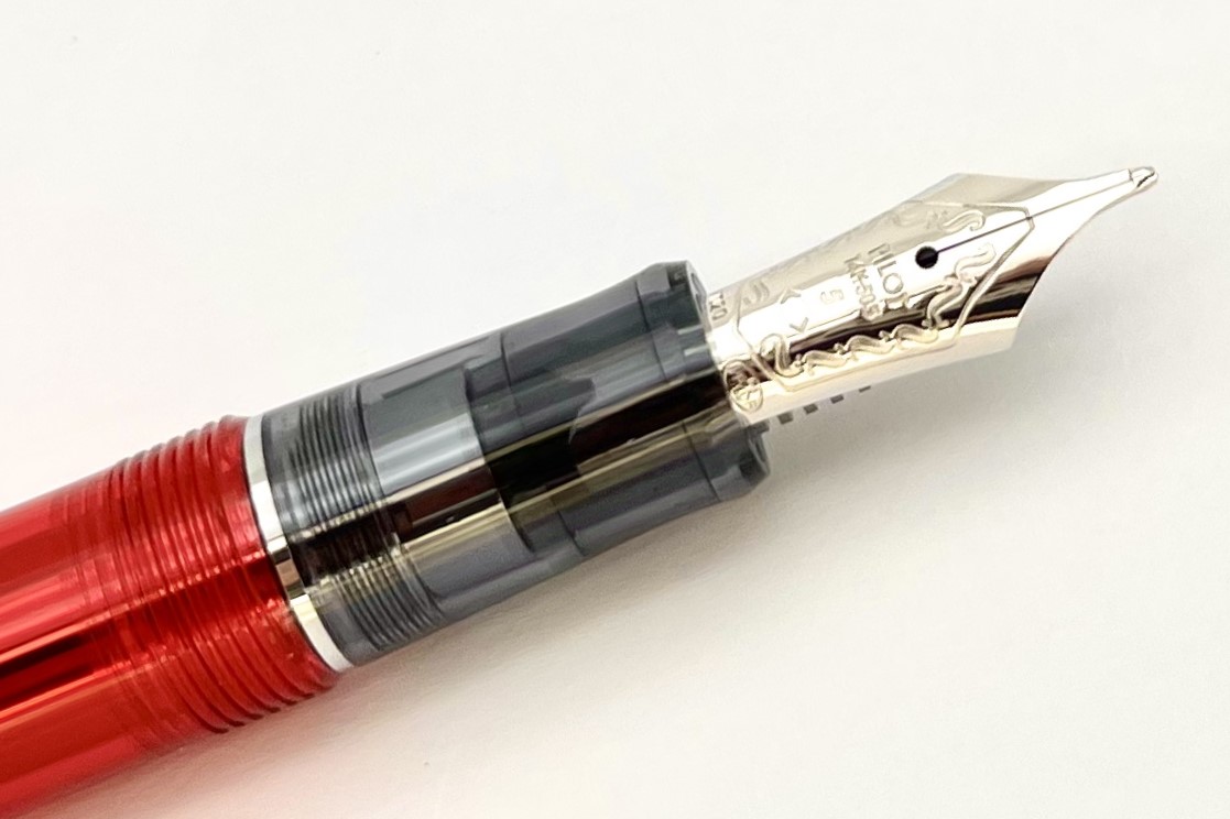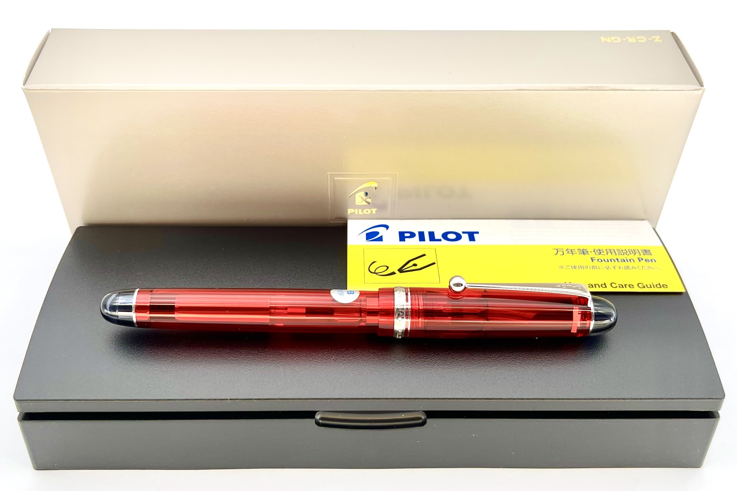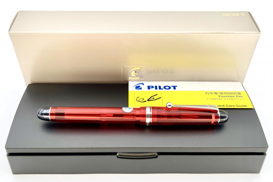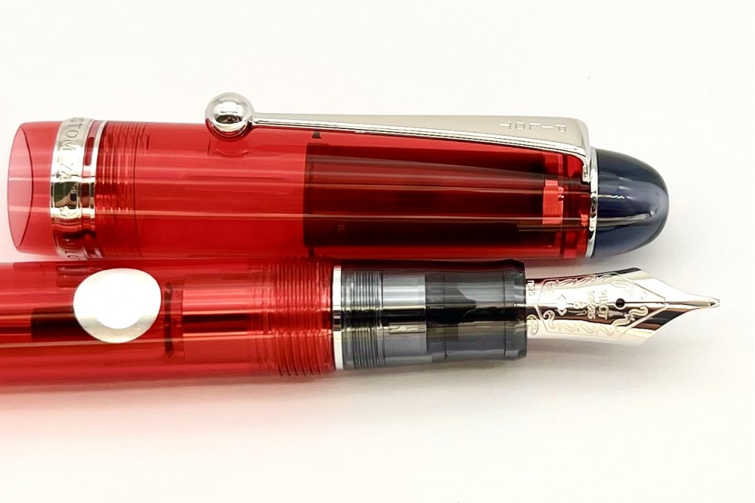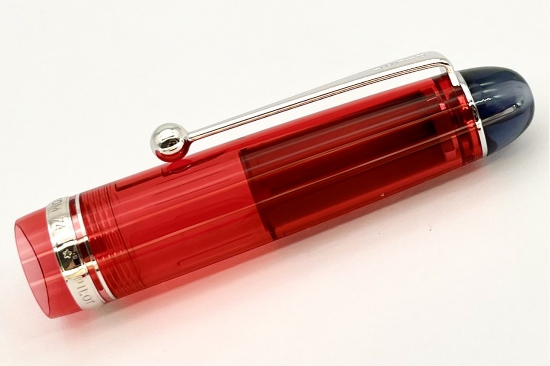 The Pilot Custom 74 Transparent fountain pen is a round ended pen with transparent body with smokey clear tip and end. The transparent demonstrator body and cap nicely shows off the pen's inner workings. Each Custom 74 demonstrator fountain pen is finely crafted with a high-capacity, Pilot CON-70 push-button converter, which holds an ample ink supply while uniquely combining the characteristics of a vacuum-filling and push-button converter. The clip and trim are plated in bright rhodium. The Pilot Custom 74 features a solid gold 14k rhodium-plated nib. It is a size #5 nib which is the same nib size as the Pilot Custom Heritage 91. Available in 3 nib sizes: fine, medium, and broad