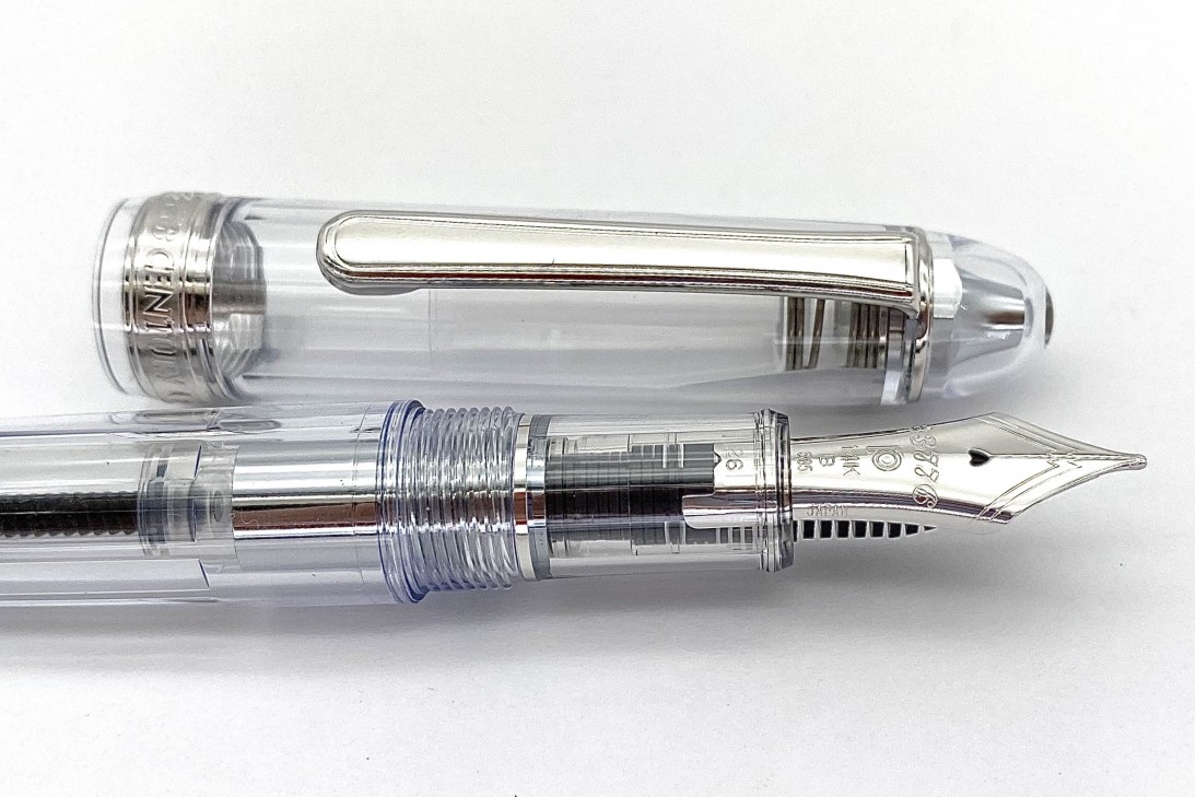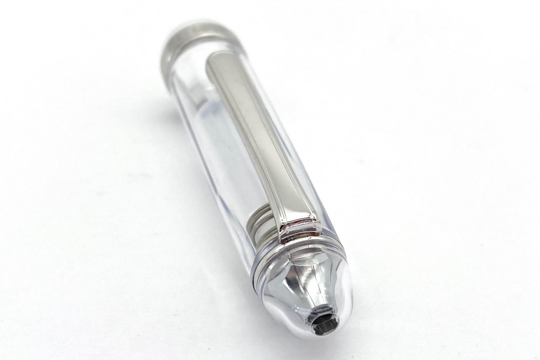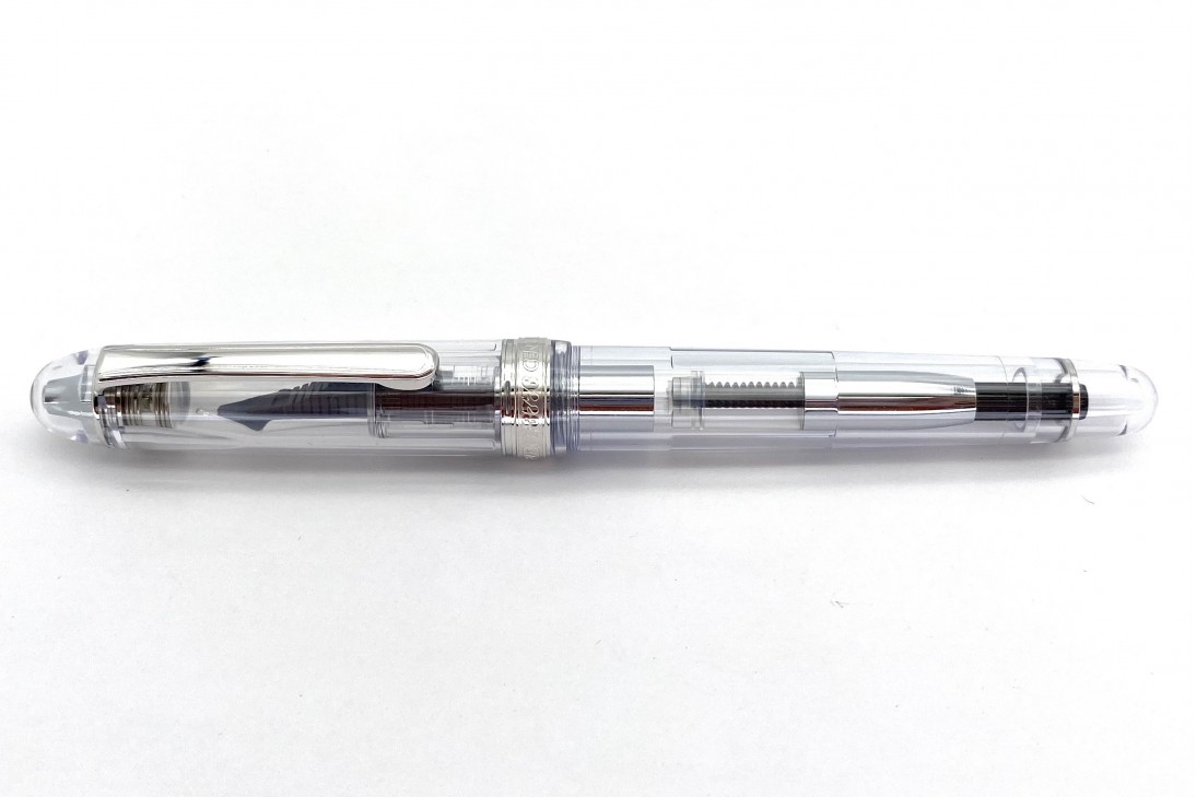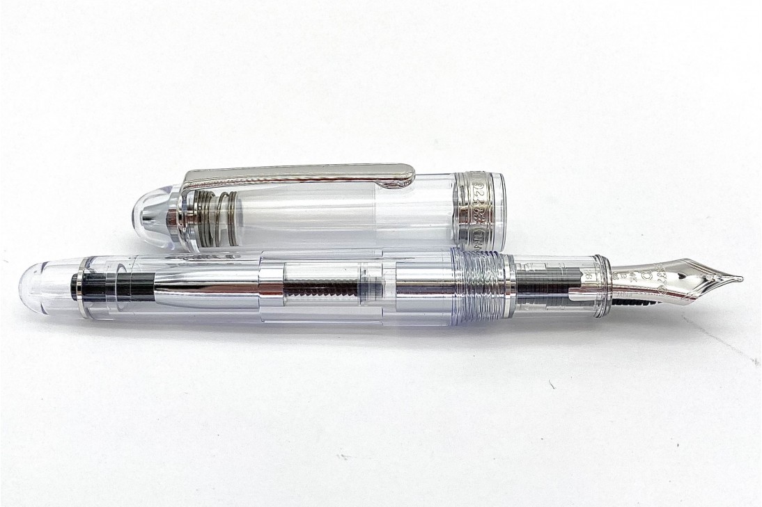 PLATINUM LE #3776 CENTURY OSHINO FOUNTAIN PEN. Launched in 2011 as the first edition of the Fuji Five Lake series, “MOTOSU,” with its completely transparent body, has drawn great attention. Seven years since its launch, Platinum are now introducing “OSHINO,” which has a clear body of a higher level of transparency, as our regular item. Created by pursuing a transparency like clear waters, this new fountain pen has been named after Oshino Hakkai, which is a famous destination for the beautiful springs sourced from the underground water of Mount Fuji. A Mount Fuji-shaped part is placed to symbolize its name "#3776," which is the height of the mountain. In addition, a method of etching is applied to the cap ring to provide a three-dimensional effect, which makes the pen even precious. The body of the OSHINO fountain pen that is transparent like clear waters matches perfectly with color inks. It comes with a blotter card with a serial number for the initial 3,000 production lots. The back of the card may be also used as a blotter paper. Fitted with a 14k rhodium-plated nib and it comes in F(fine), M(medium), B(broad) nib.