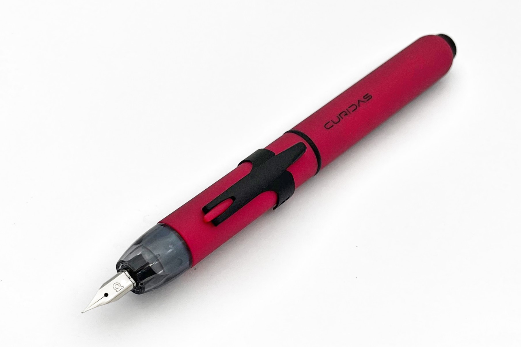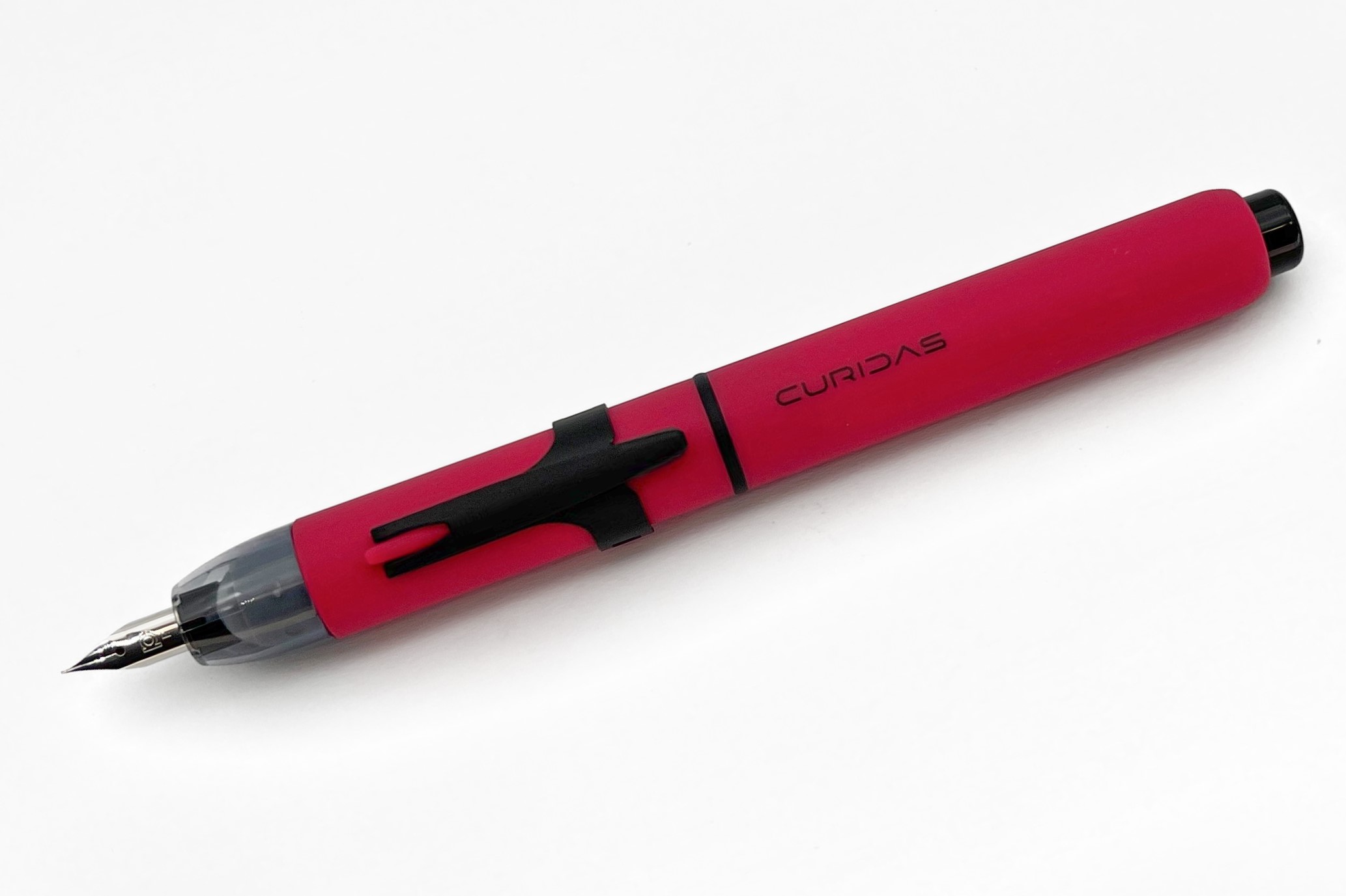 The Platinum Curidas retractable fountain pen has all the convenience of a click rollerball but with the smooth writing experience of a fountain pen. Instead of a traditional cap, the Curidas uses an internal seal to protect the steel nib and keep the ink from evaporating when retracted into the pen.