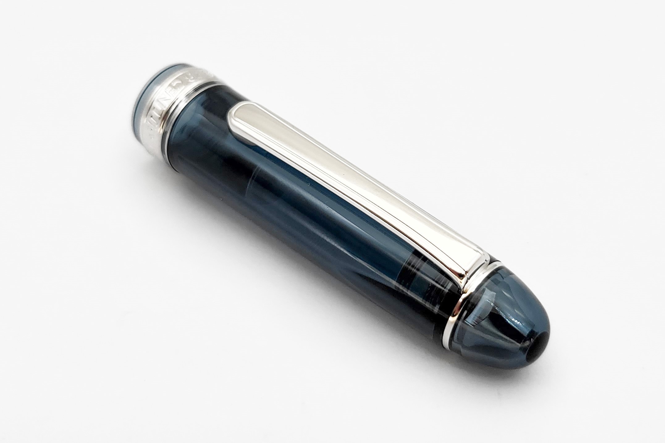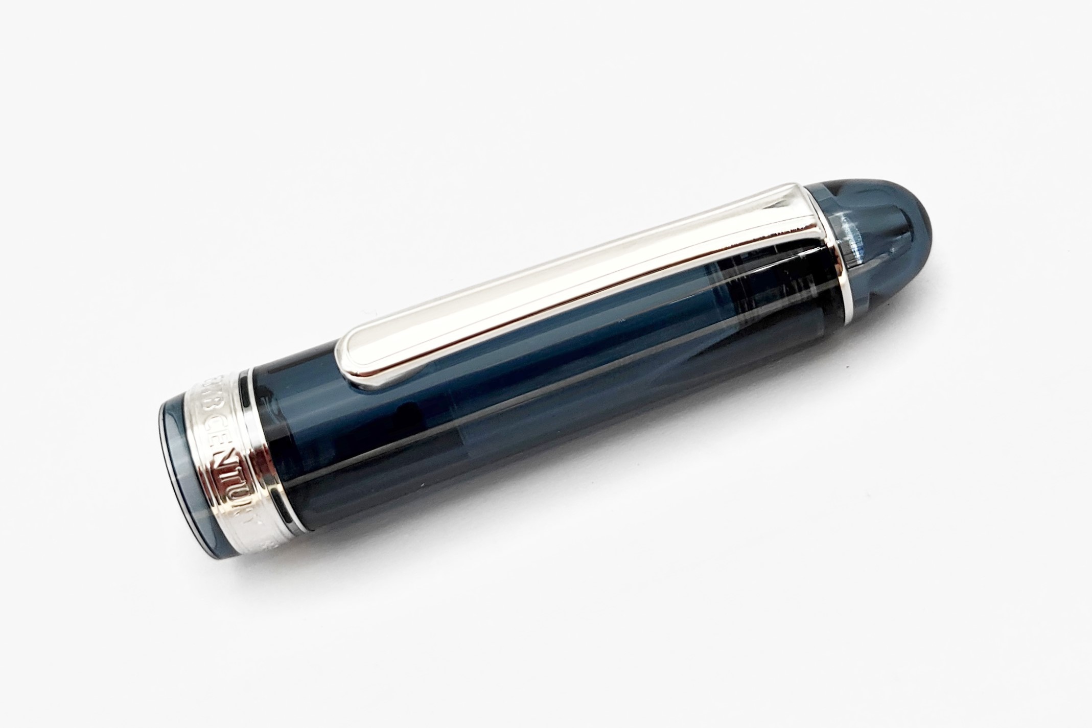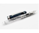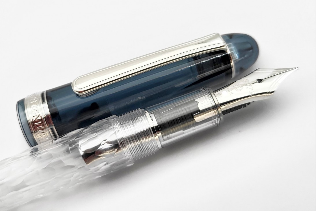 For the first time in the #3776 CENTURY series, the Uroko-Gumo fountain pen features a bi-coloured design, with different colors for the cap and body. The stylish dark blue-grey cap represents the surface of Mt. Fuji colored by seasons and time while the contrasting clear body features an intricately carved design.