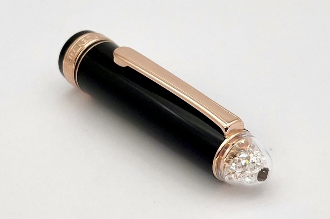 This black fountain pen is accented by rose gold trim and features a rose gold nib. This limited edition series will be available in 2.000 pieces worldwide.