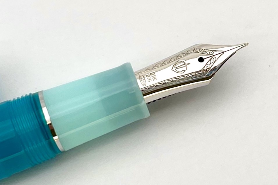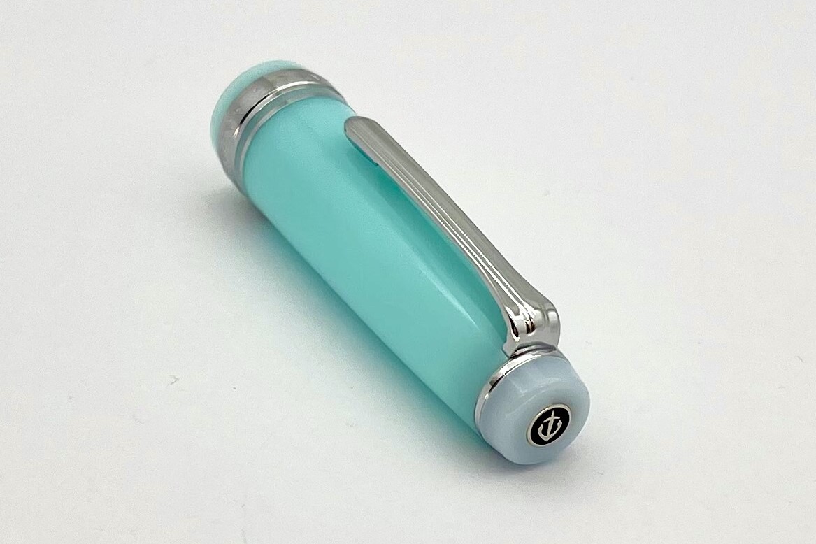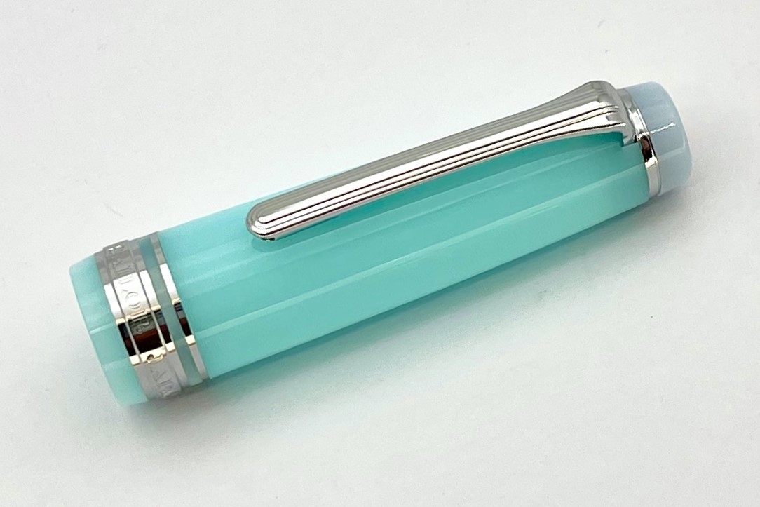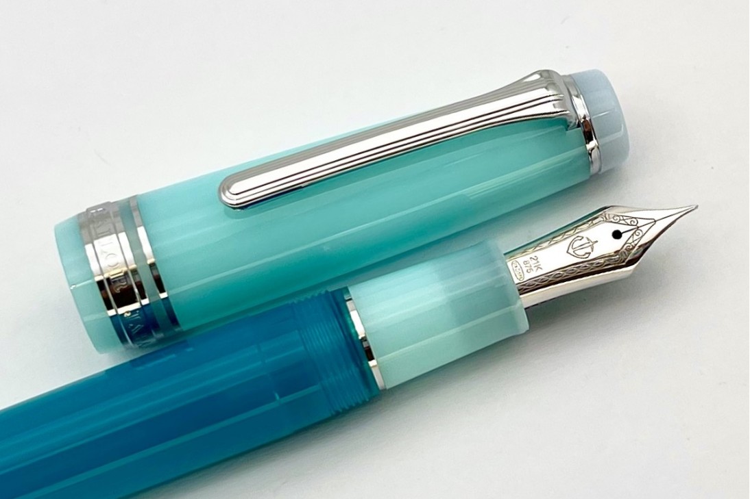 Blue Margarita features two colors for body and cap, darker blue shade with a lighter shade of blue on the cap. Its 21 KT gold nib comes with the new Sailor logo and without "1911".