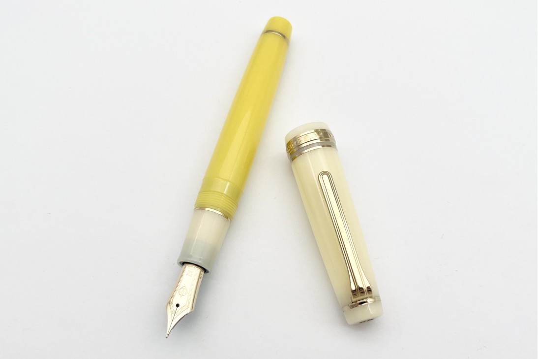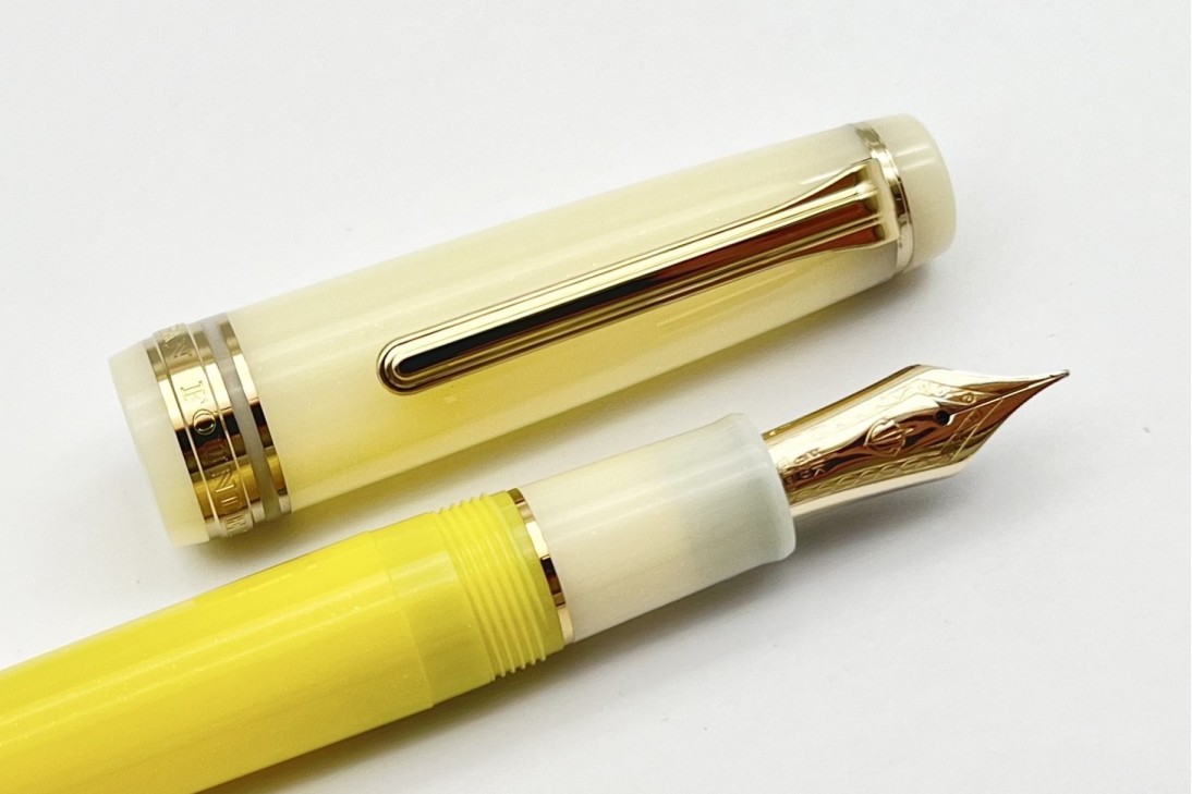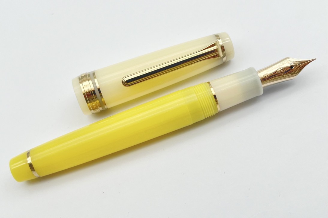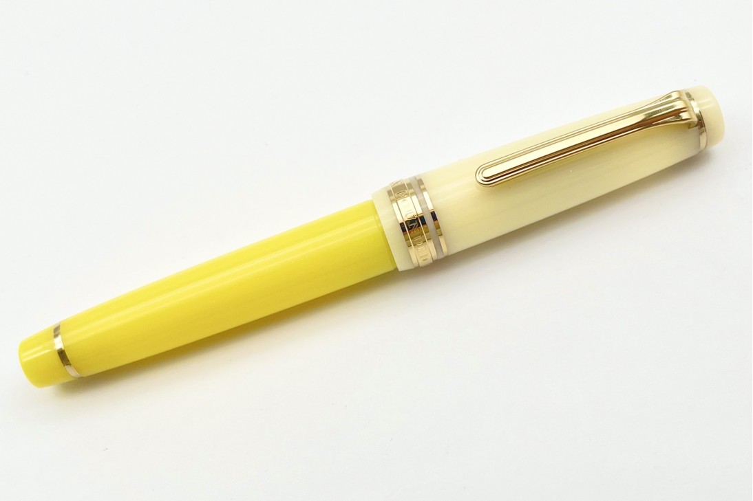 Sailor Professional Gear Smoothie Passion Fruit features a combination of pastel yellow with gold plated elements. Experience the tangy sweetness of a passion fruit smoothie with this exotic and vibrant yellow hue.
