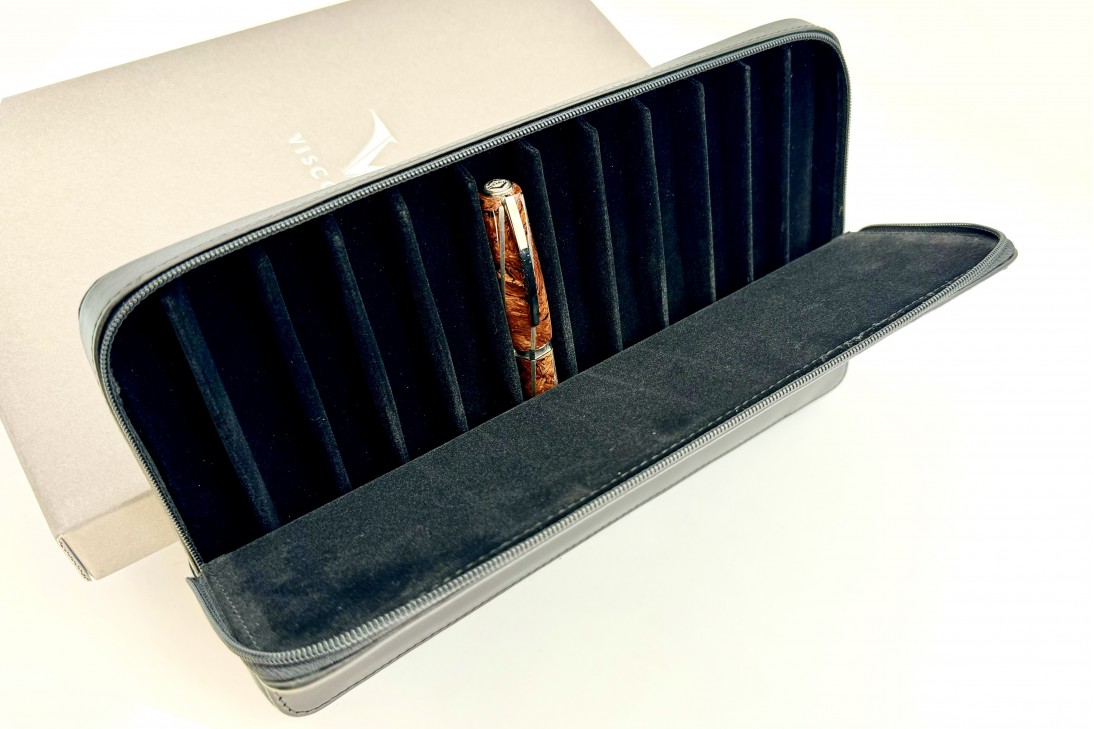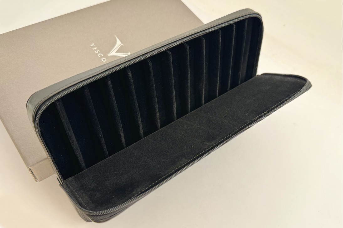 The case is designed to keep your pens well separated, every pen has its own slot. Ensuring they stay safe and stylishly preserved. The subtle branding of Visconti guarantees true quality and craftsmanship. Ideal for personal use or as a luxurious gift.