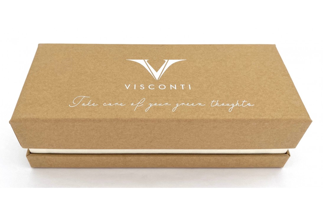 This is Visconti's first eco-friendly writing instrument, the Rembrandt Eco-logic. It takes its inspiration from the beauty and purity of nature. This simple and elegant writing instrument is dedicated to the free-spirits of this world. The Eco-logic fountain pen is made from hemp bioplastic, a non-polluting material that is biodegradable and very resistant. Hemp is a plant with a strong and resistant fiber. Many eco-friendly and sustainable products can be created from this precious natural resource. The bioplastic parts of the pen are made with an injection molding process. Hemp’s natural colour during the molding phase tends to veer towards brown. The pen’s 3 shades (red, black, and blue) are created using natural pigments. The pen’s packaging is made from natural or recycled materials. The base on which the writing instrument is presented is made from unprocessed hemp. The fountain pen is fitted with a steel nib. It accepts cartridge and converter.